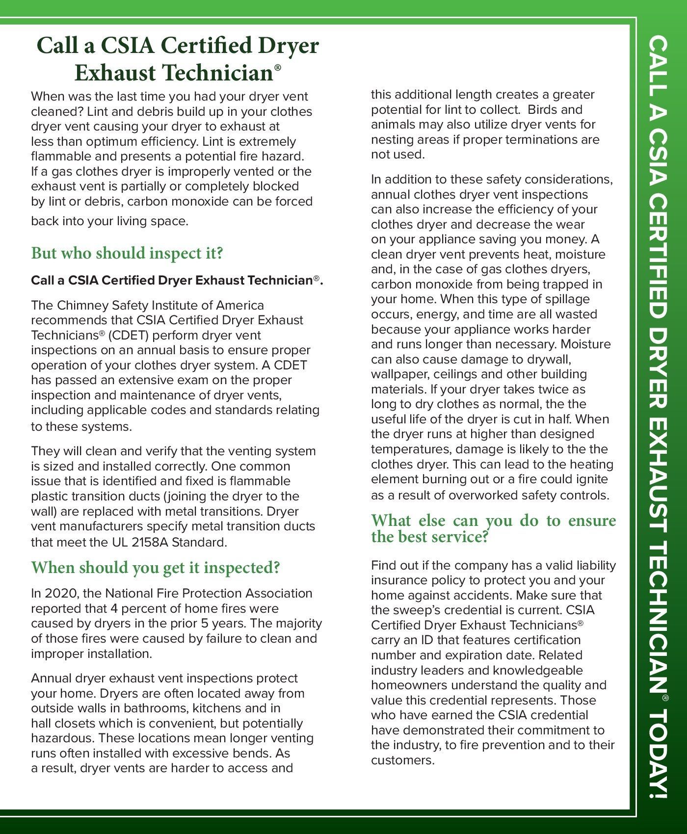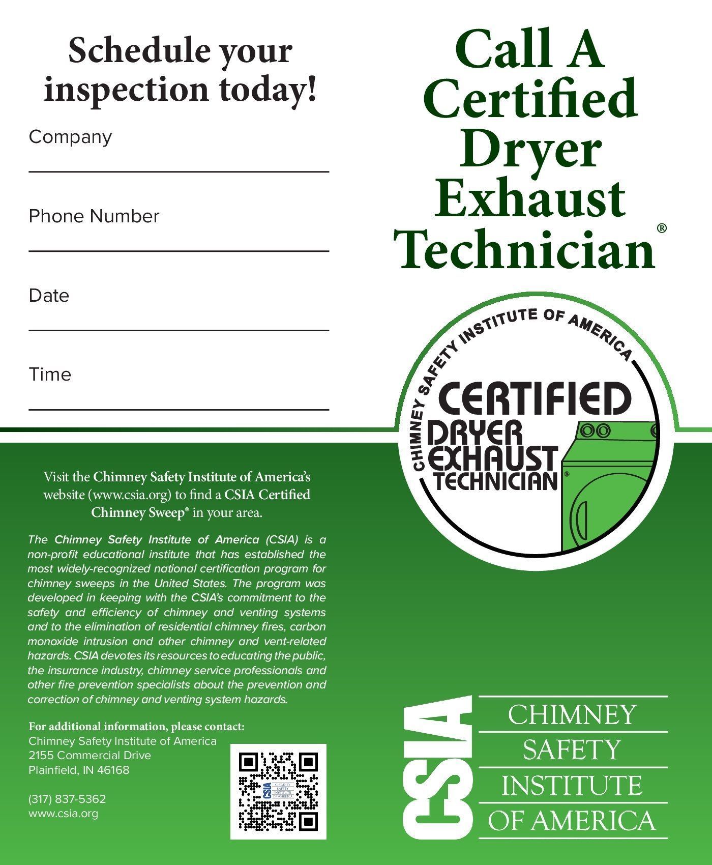 Exterior and interior vents, ducts, transitions, and dryers are cleaned, and a Dryer Safety Notice is included.