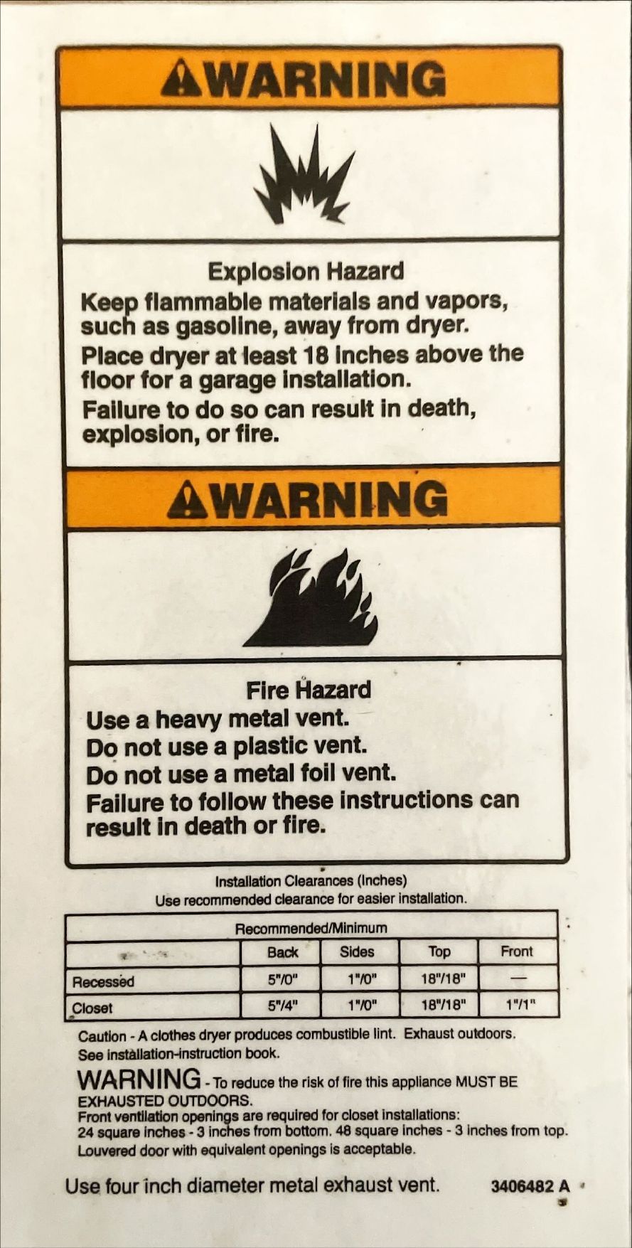 · Follow dryer manufacturer instructions where stricter than code.